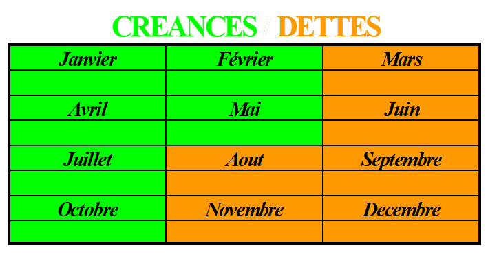 Les délais de règlement sont entendus « fin de mois ». Et il faut placer le montant de ses créances ou de ses dettes sur son échéancier.
